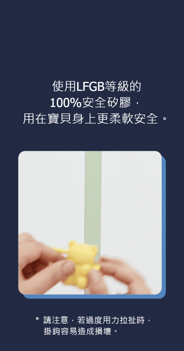 使用LFBB等級的100%安全矽膠,用在寶貝身上更柔軟安全。