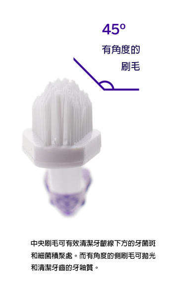 ☆中央的刷毛可深入清潔牙齦隙縫殘留的的牙菌斑和細菌