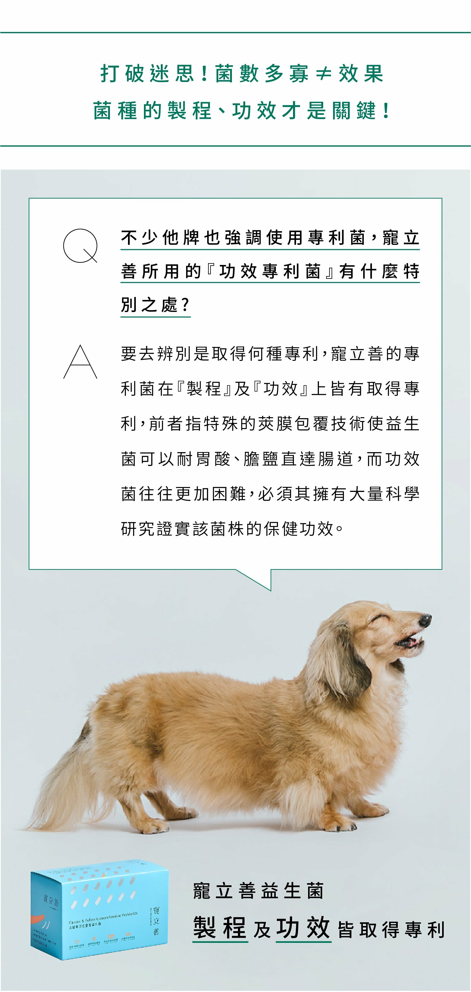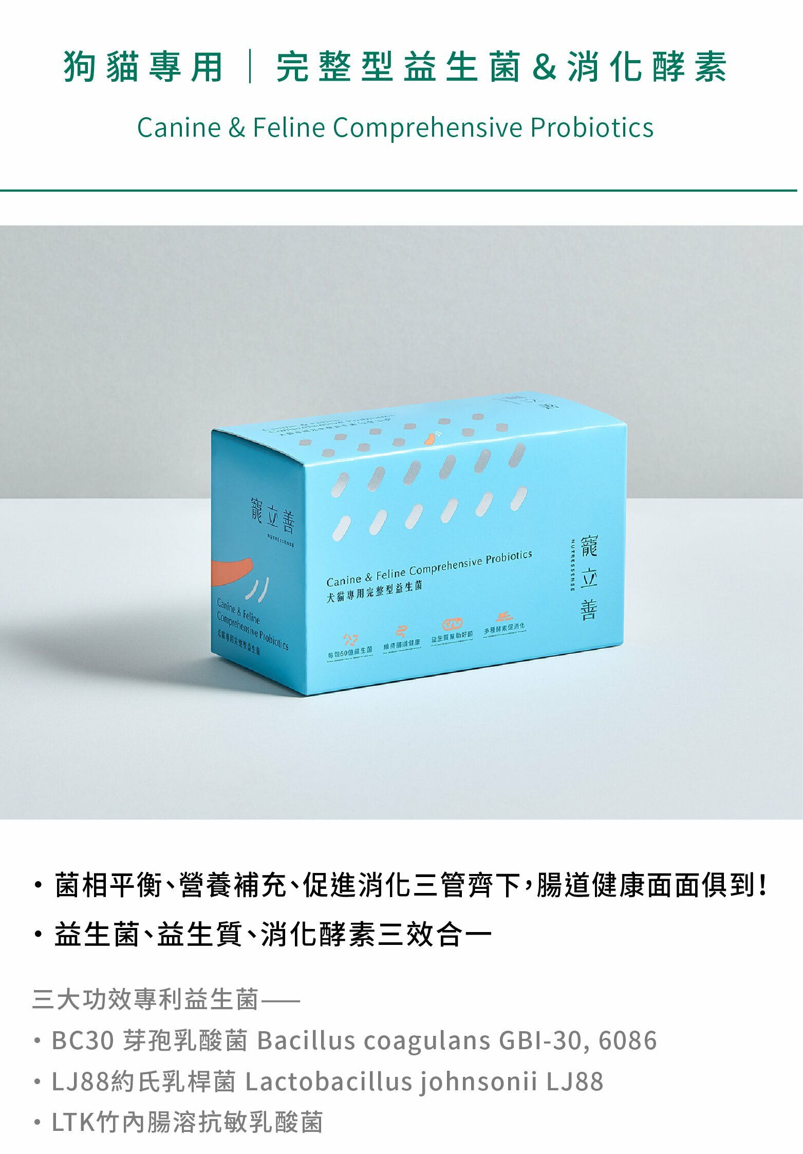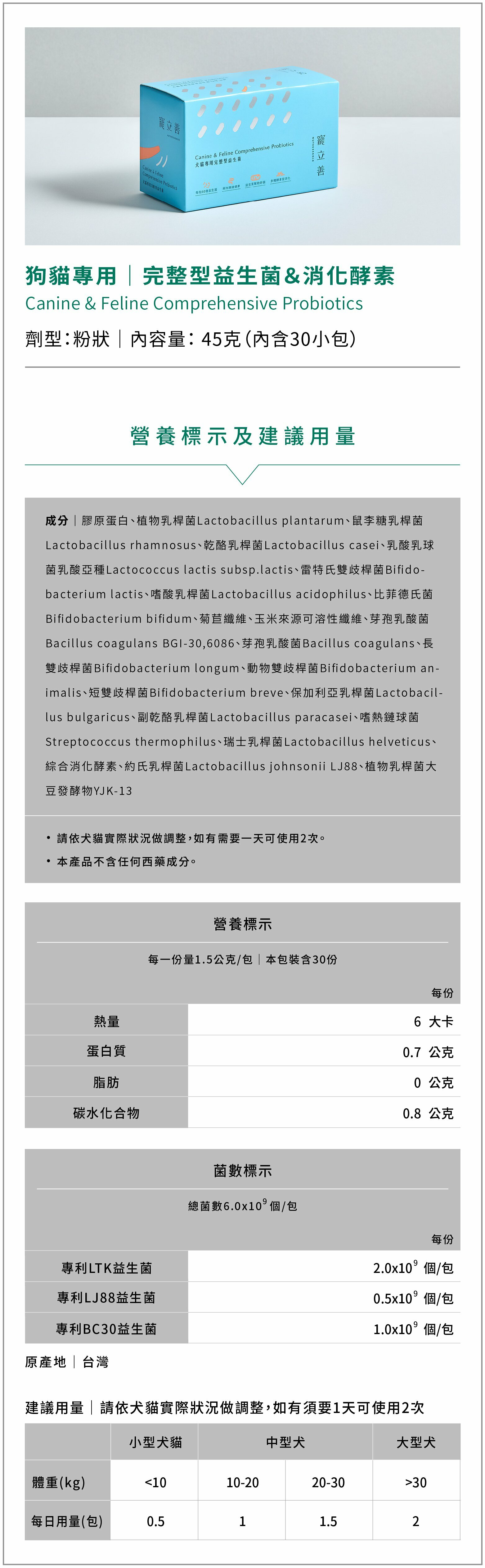 ✔寵物專用益生菌推薦,堅持只用國際大廠原料!Ganeden BC30專利芽孢乳酸菌+LJ88約氏乳桿菌+日本專利LTK竹內乳酸菌,共三大專利菌及16支複合乳酸菌。