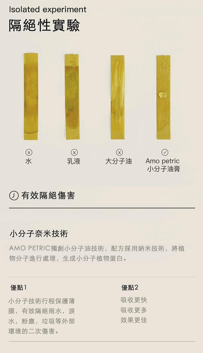 ◆ 小分子油技術,有效隔絕外界傷害且加速吸收