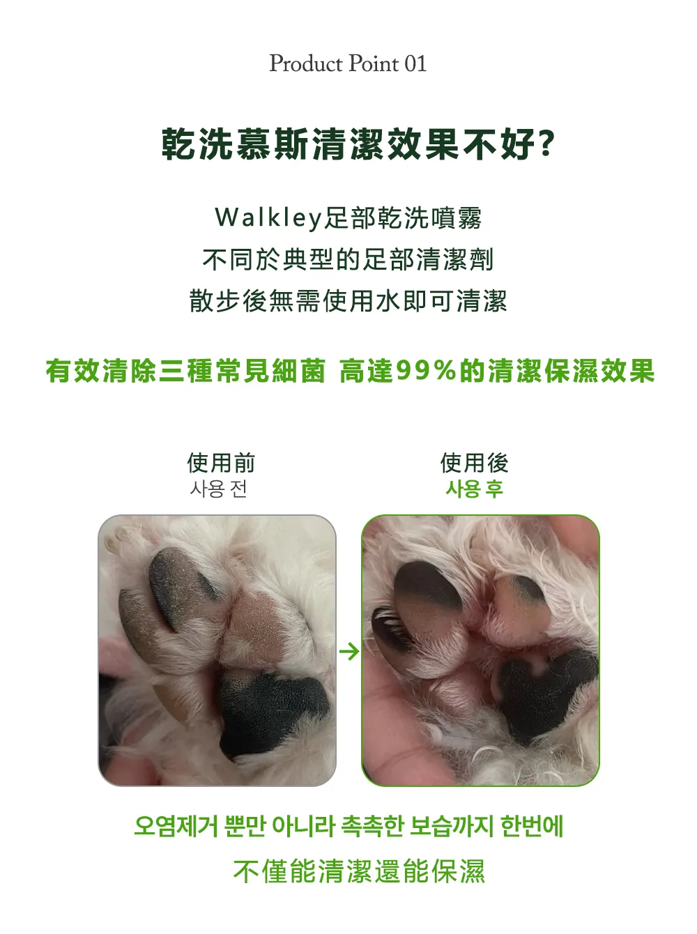 這款犬用足部乾洗噴霧可替您節省每日在狗狗散步後的麻煩,只需要噴在狗狗足部並擦拭,同時達到消毒清潔效果,每日使用可保持肉墊柔軟與滋潤。