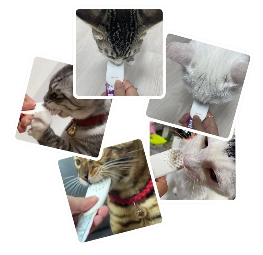 放上毛孩愛的肉泥並引導他們去咀嚼