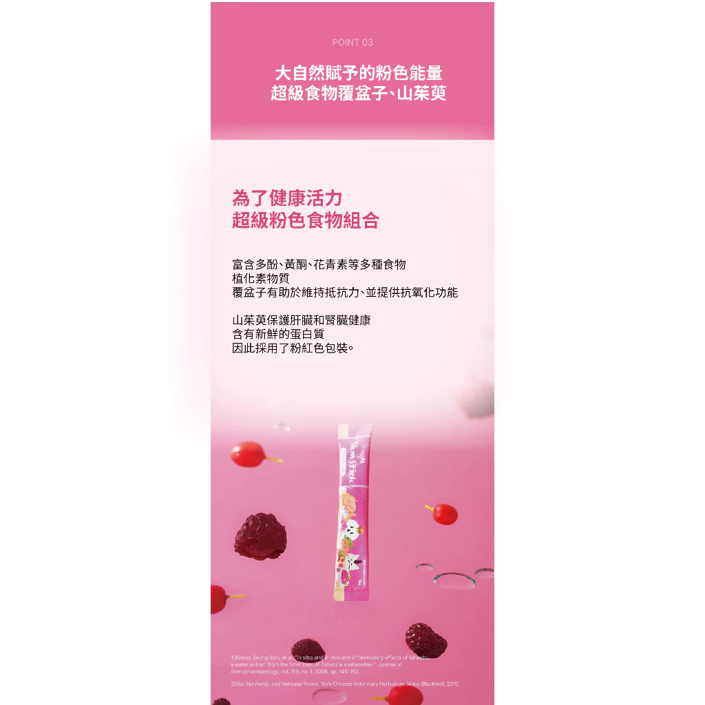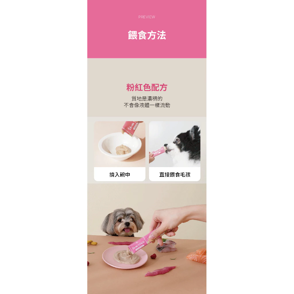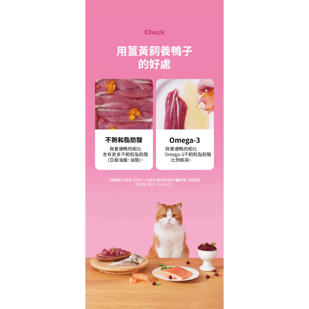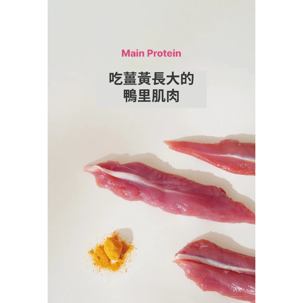 主要成分:鴨胸肉(韓國)、純水、鱸魚(台灣)、木薯、鮭魚(阿拉斯加)、Taheebo萃取物、山茱萸、覆盆子
