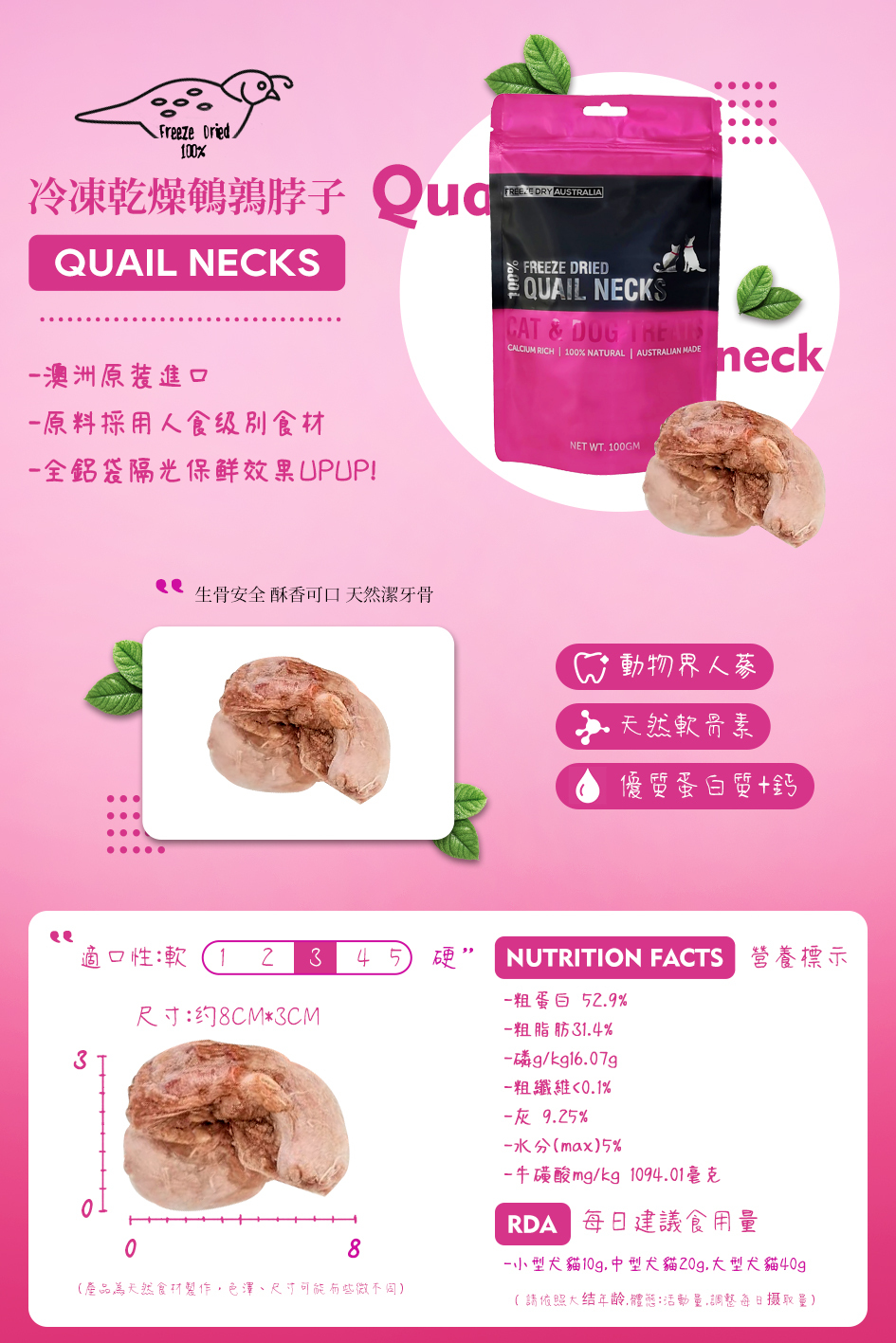 FDA飛萃 - 冷凍乾燥系列 鵪鶉脖子100g