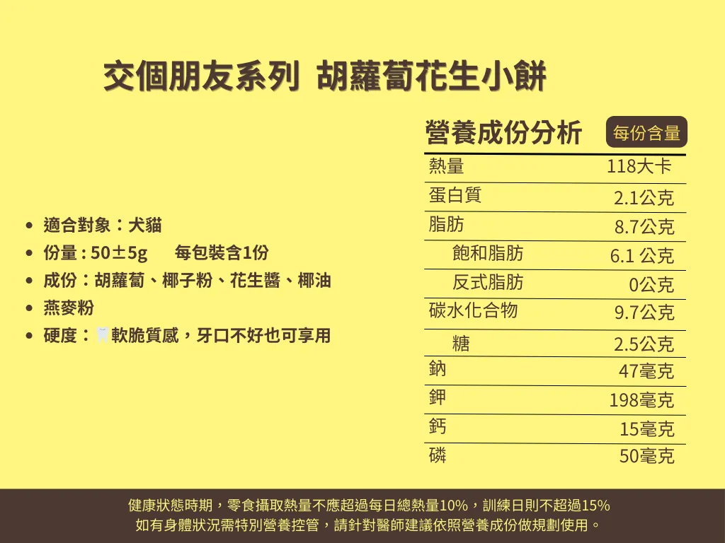成份|胡蘿蔔、燕麥粉、椰子細粉、花生醬