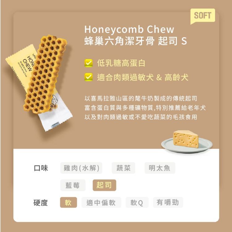 用科學角度為狗狗依照牙齒結構來設計,蜂巢形狀能有效覆蓋所有牙齒表面,提供360度的全面護理,無縫隙去除牙菌斑,由韓國寵物行為獸醫師薛彩賢設計研發,以獨特的六角形及蜂巢形狀達成潔牙效果