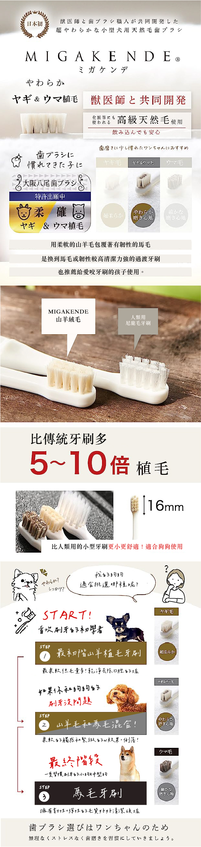 MIGAKENDE齒敏樂-寵物天然軟毛牙刷(基礎柔軟型-山羊毛+馬毛)