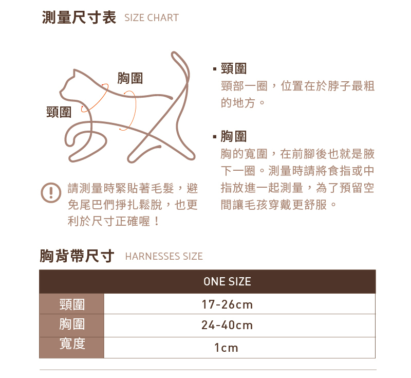 貓用胸背帶怎麼挑?選購前一定要先確認胸圍的尺寸。
