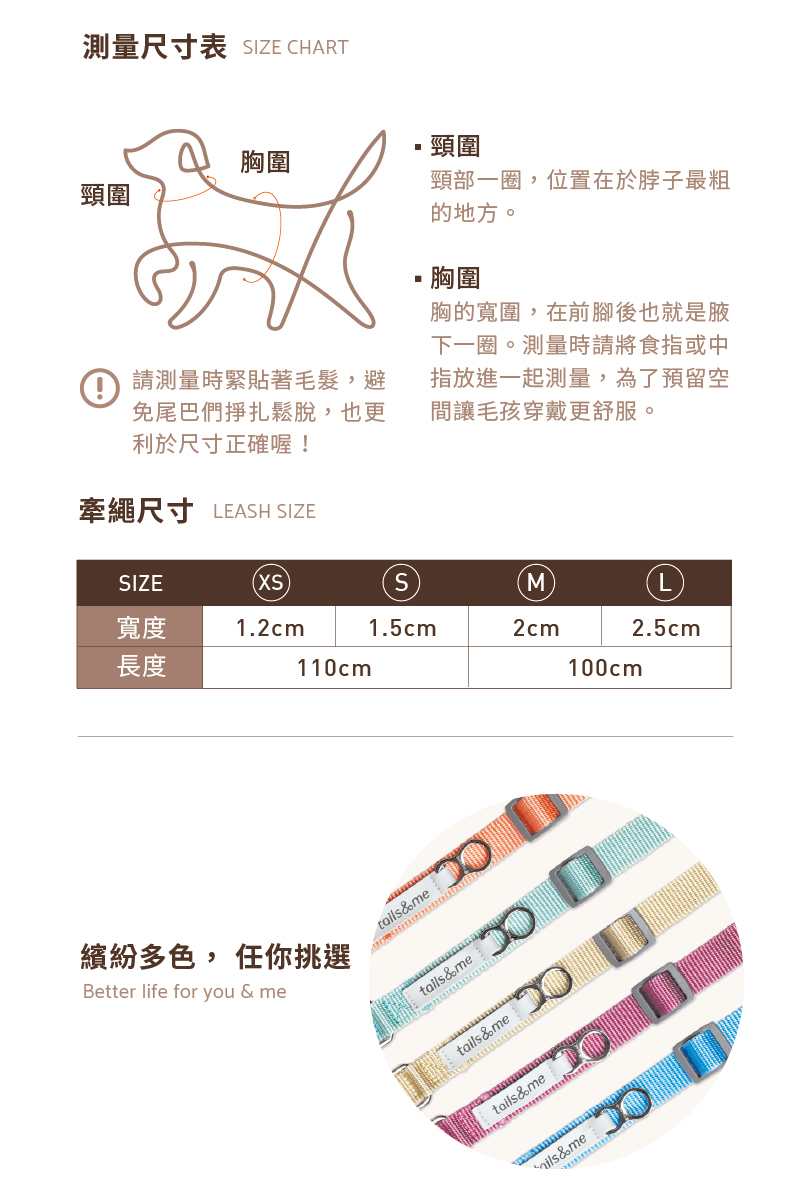 tails&me 尾巴與我 -經典尼龍帶系列 單色牽繩(三色)