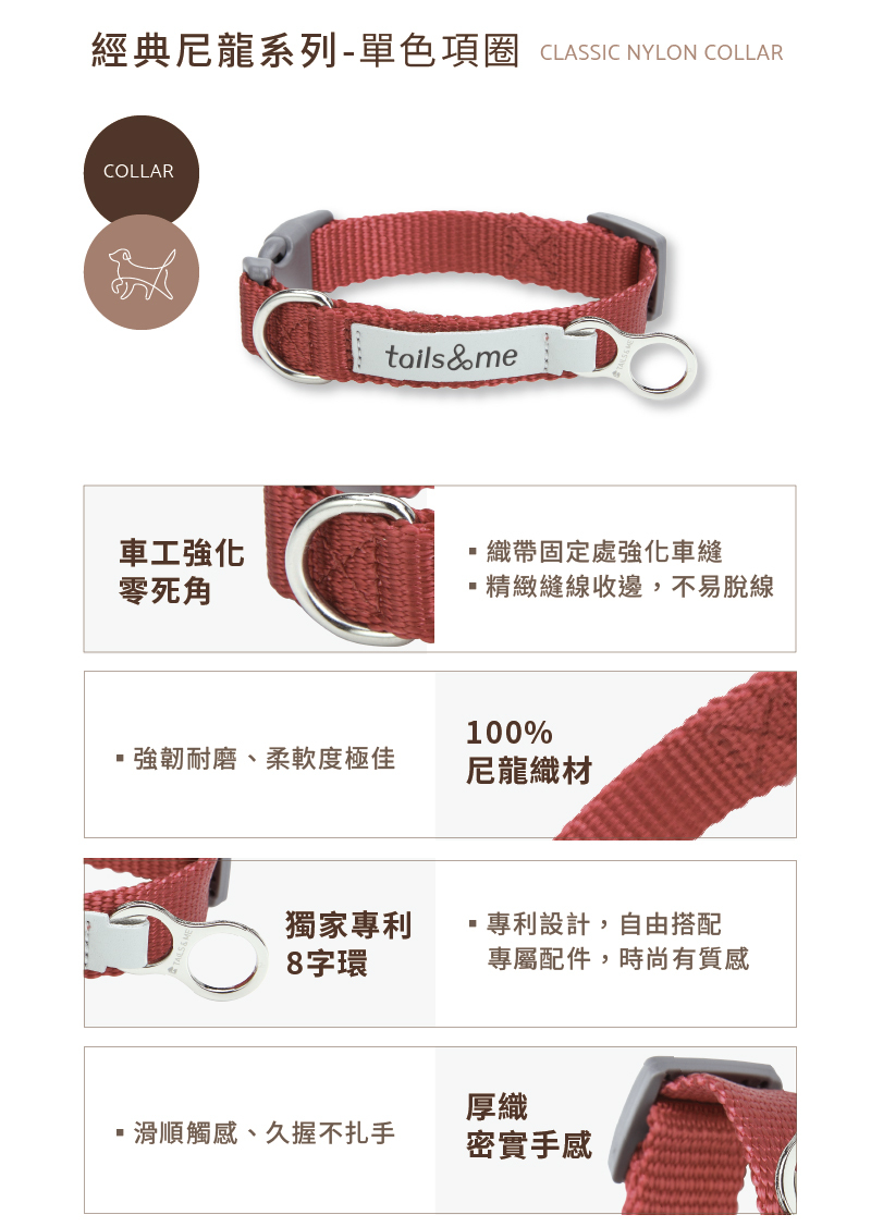 tails&me 尾巴與我 - 經典尼龍帶系列 單色項圈